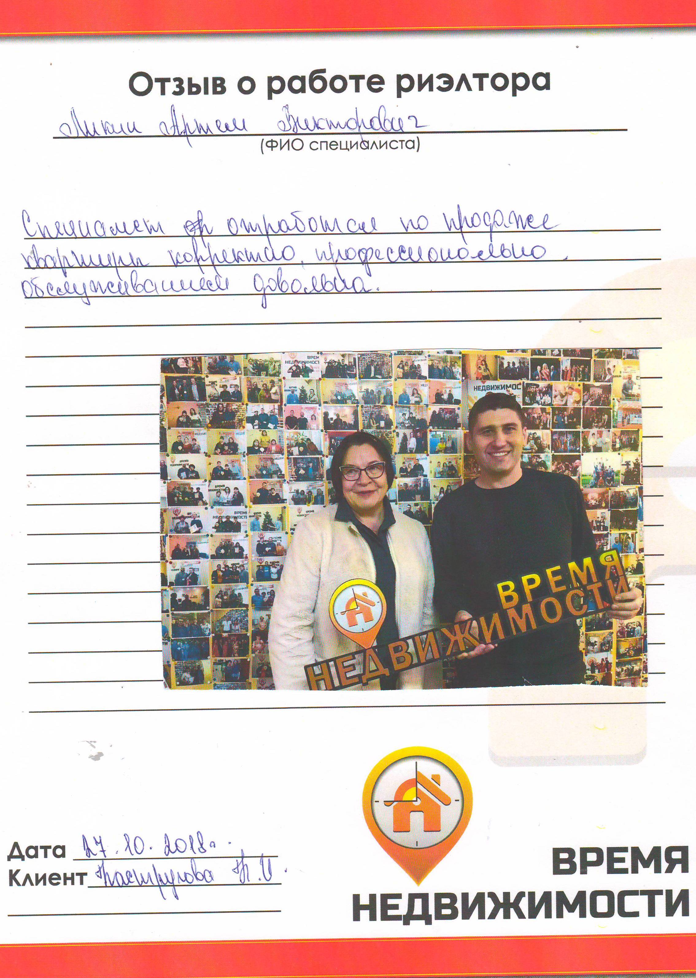 Впечатление от работы с риэлтором Махиной Аленой остались только положительные. До встречи с Аленой работал с двумя риэлторами и впечатления прямо противоположные. Первое - положительная энергетика. второе- не навязчива и пунктуальна. третье - чувствуется знание дела. Пятое - просто приятный человек. Спасибо большое!!!
