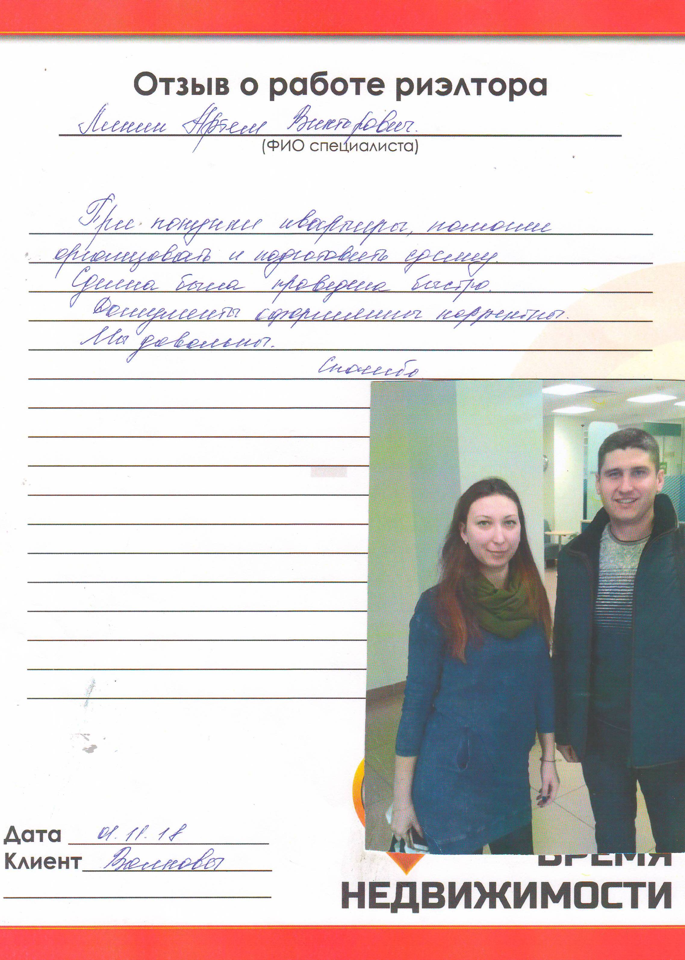 Спасибо Алене за помощь при покупке квартиры, за ее компетентность, честность, терпение. Я очень рада, что обратилась именно к вам. Спасибо за вашу профессиональную работу!