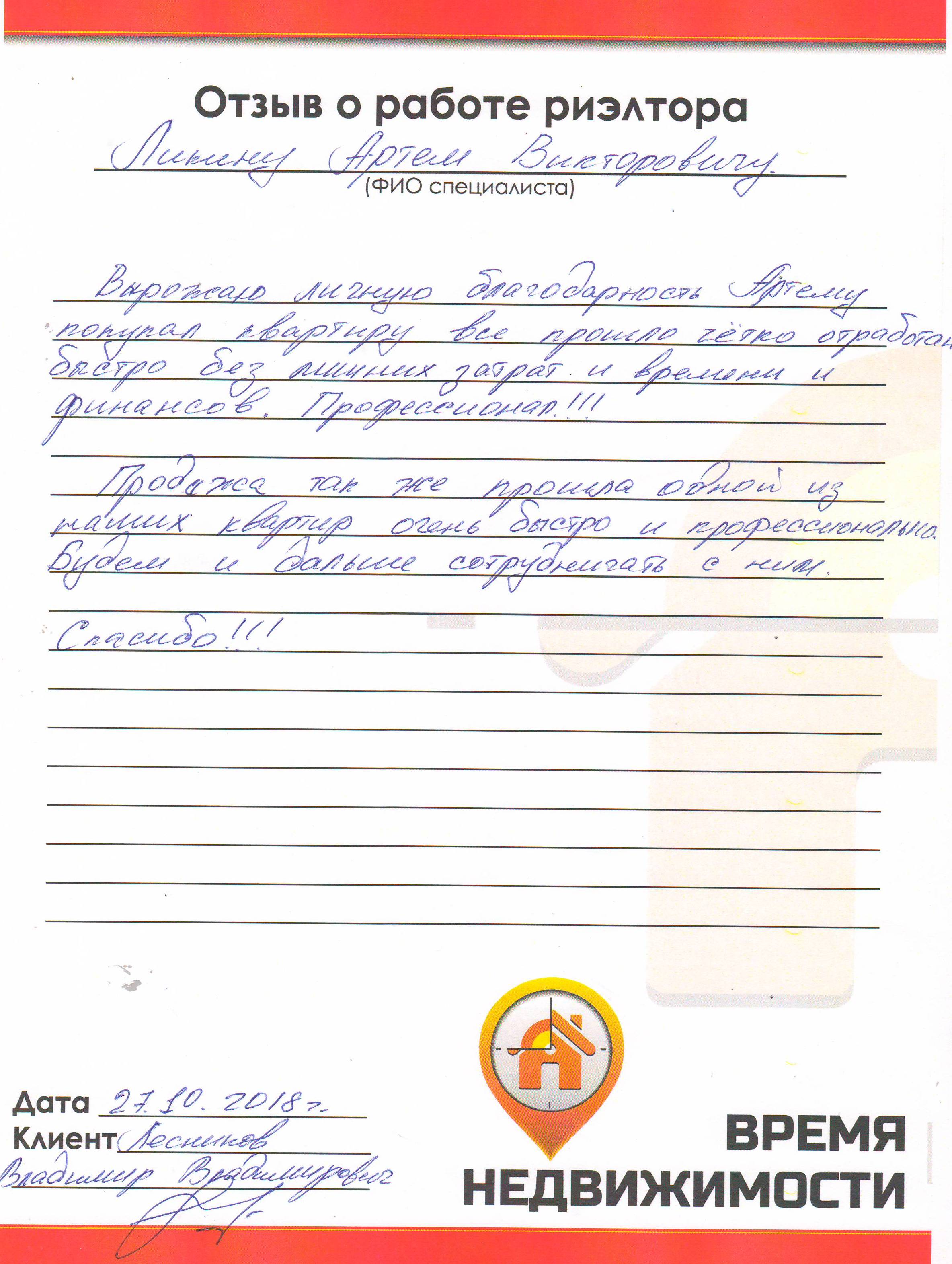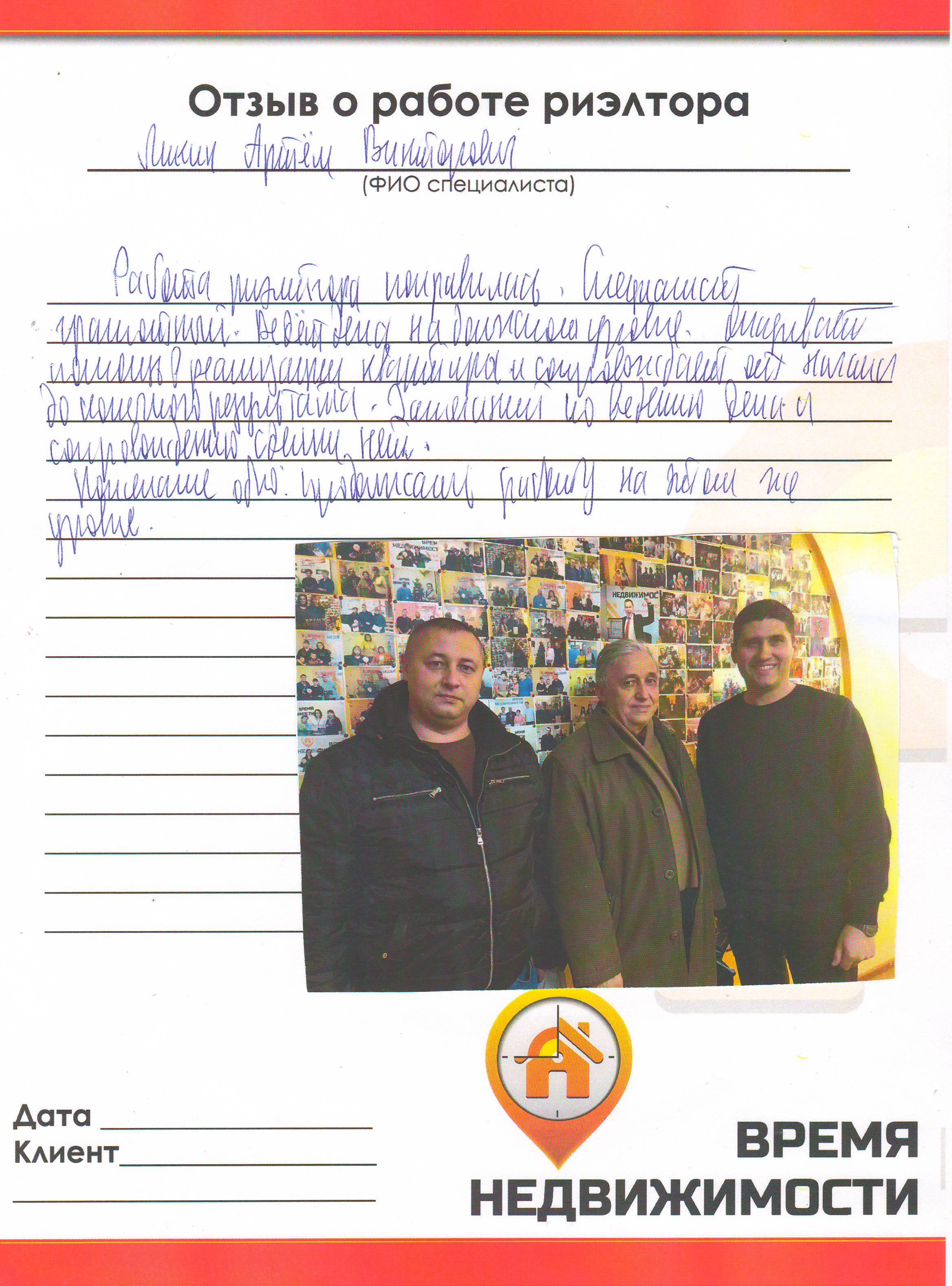 Выражаю личную благодарность Артему. Покупал квартир, все прошло четко, быстро, без лишних затрат, времени и финансов. Профессионал! Продажа квартиры так же прошла очень быстро и профессионально. будем и дальше сотрудничать с ним. Спасибо!