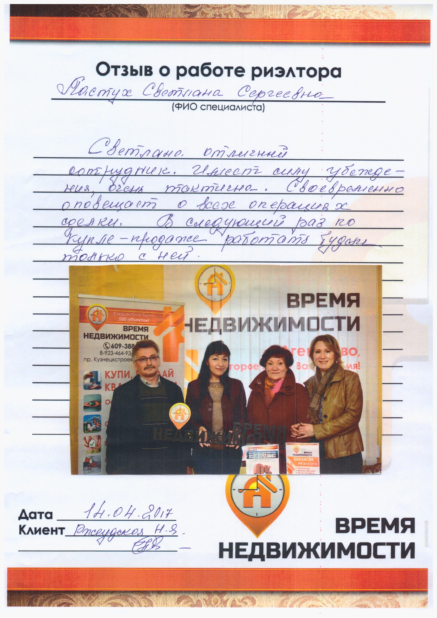 Светлана отличный сотрудник. Имеет силу убеждения, очень тактична. Своевременно оповещает о всех операциях сделки.