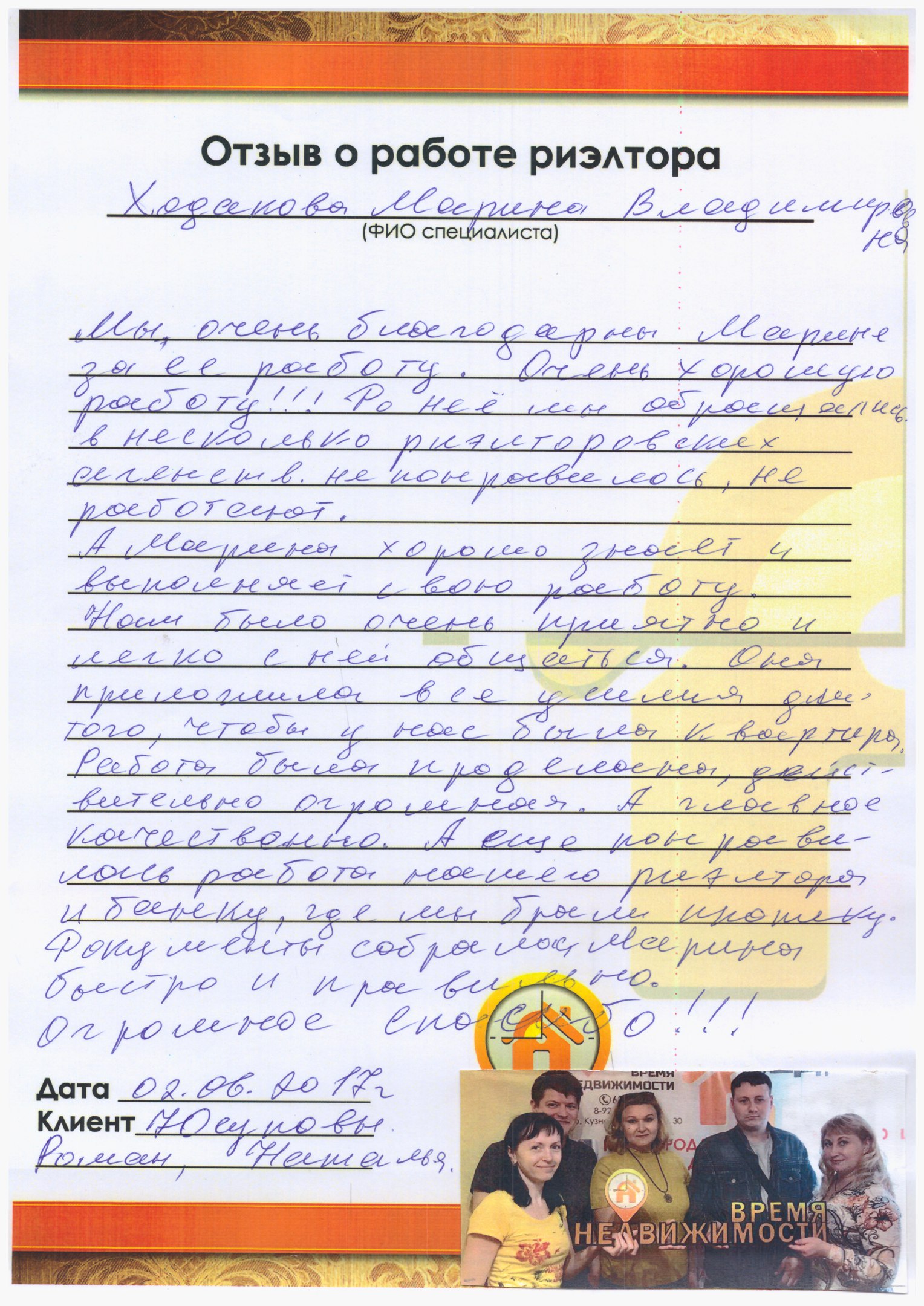 Мы очень благодарны Марине за ее работу. Очень хорошую работу!!!