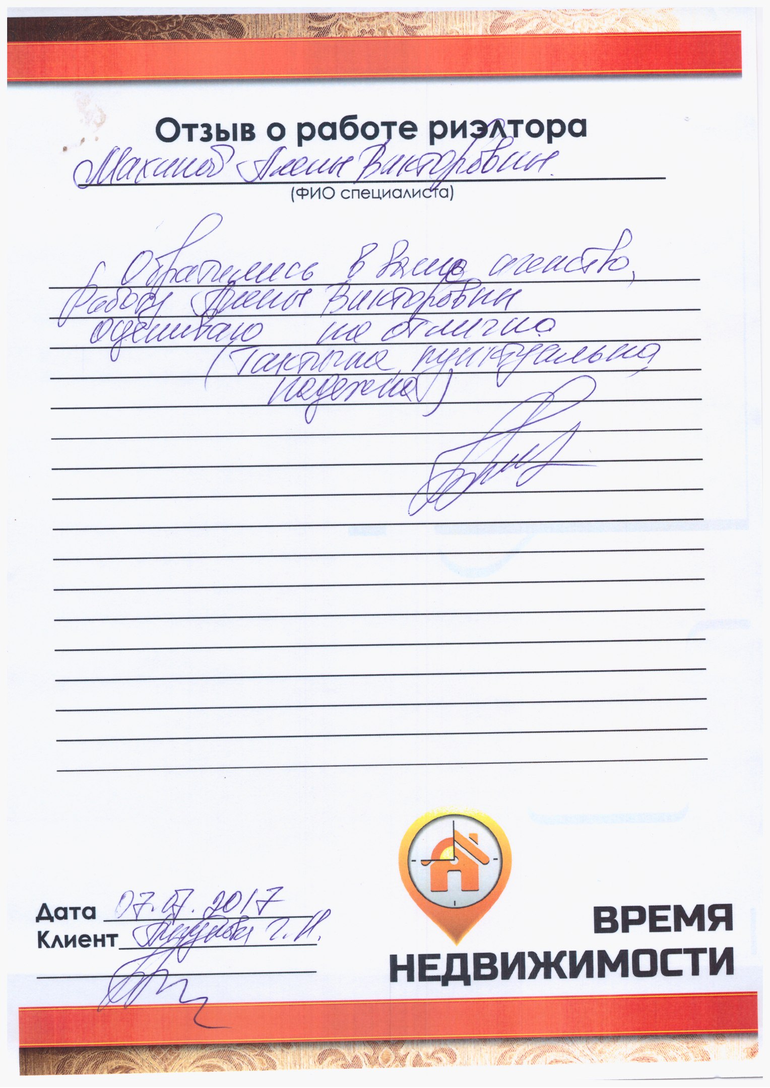 Обратились в ваше агентство, работу Алены Махиной оцениваю на отлично (тактична, пунктуальна, надежна)
